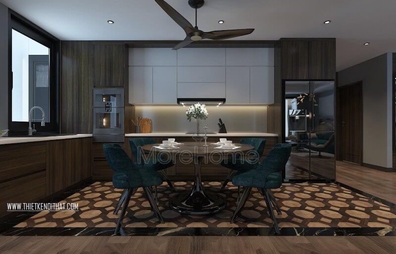 Thiết kế nội thất phòng bếp kết hợp với phòng ăn tiện nghi, hiện đại
