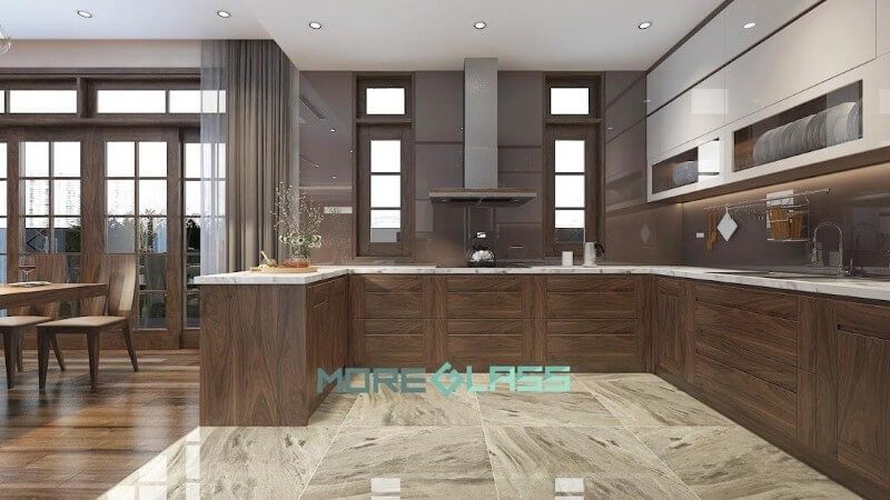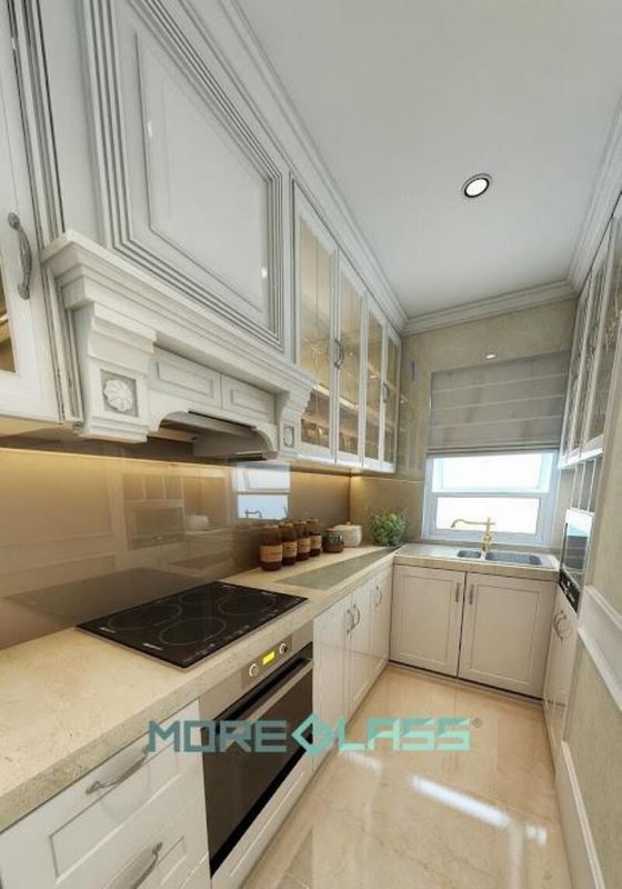Thiết kế mẫu kính bếp màu be đậm MG-020 đơn giản làm điểm nhấn cho gian bếp mang phong cách cổ điển.