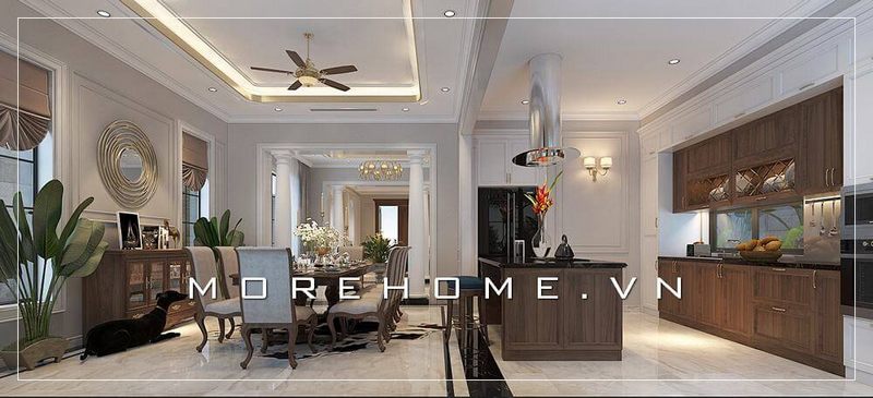 Thiết kế nội thất phòng bếp chung cư phong cách tân cổ điển sang trọng và đẳng cấp