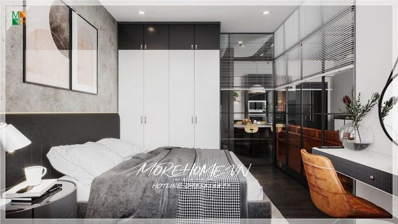 Tủ áo hiện đại được thiết kế dạng cửa trượt âm tường giúp cho không gian phòng ngủ thêm rộng rãi và thoáng mát.