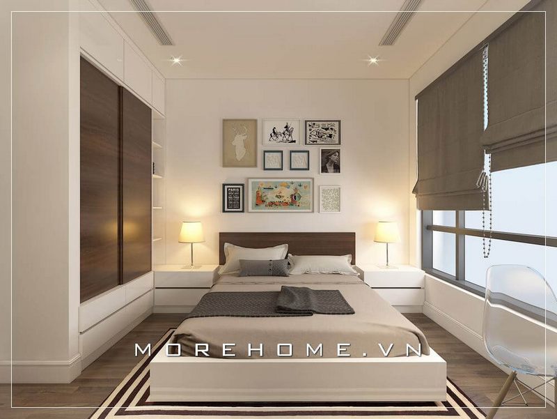 Phòng ngủ chung cư Vinhomes Gardenia kết hợp tủ áo vừa âm tường, vừa cánh lùa, tận dụng tối đa không gian