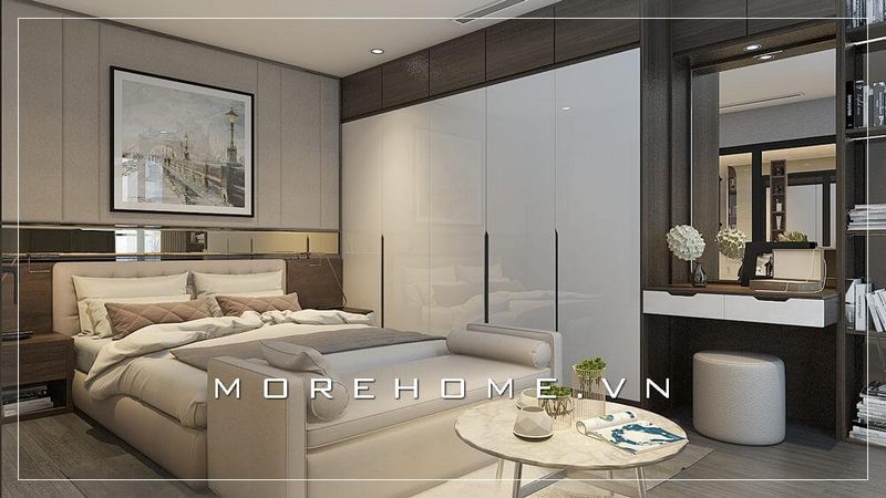 Tủ áo chung cư hiện đại đầy sang trọng, chất liệu gỗ công nghiệp chủ đạo được gia chủ lựa chọn mang đến sự sang trọng và nhẹ nhàng hơn