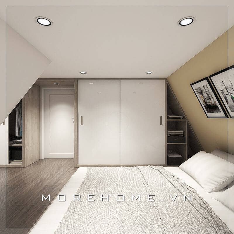 Mẫu tủ quần áo được thiết kế âm tường giúp cho gia chủ tiết kiệm được tương đối diện tích cho căn phòng của mình