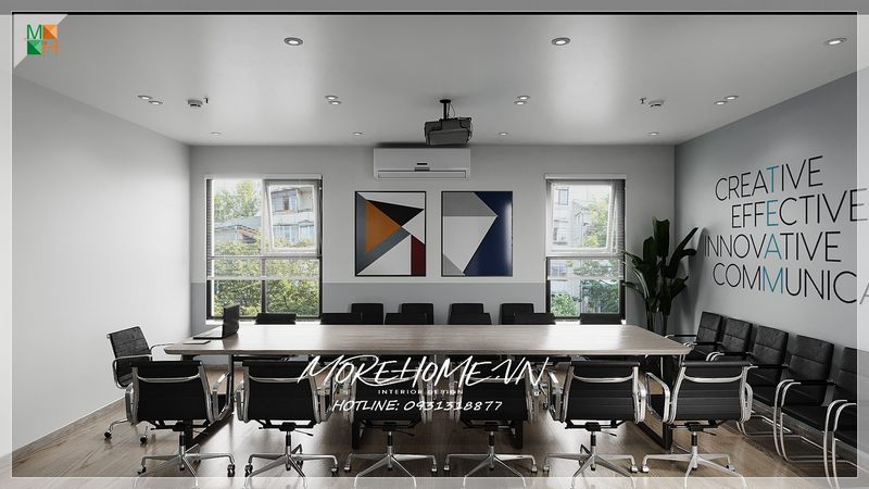 Mẫu thiết kế nội thất phòng họp văn phòng VCC hiện đại kết hợp tranh canvas treo tường độc đáo.