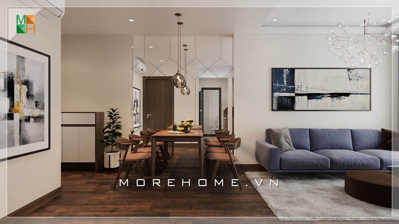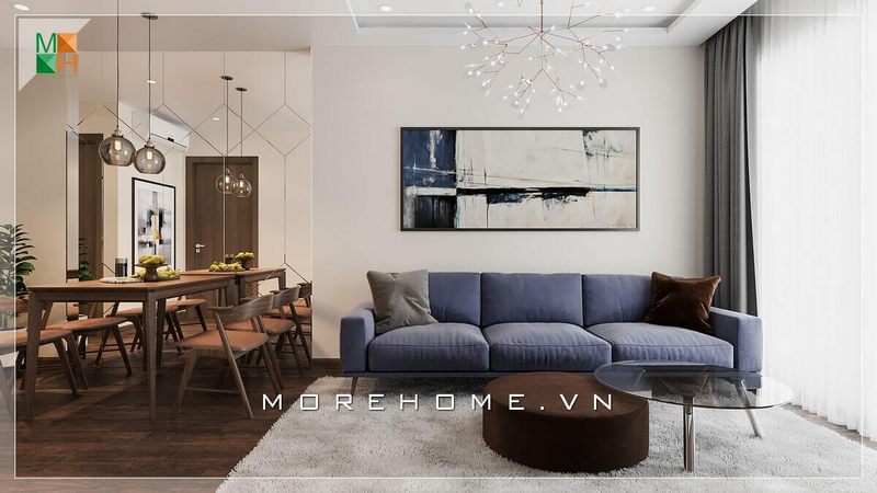 Phòng khách liên kết trực tiếp với khu vực ăn uống, tạo không gian mở và sự thông thoáng cho căn chung cư