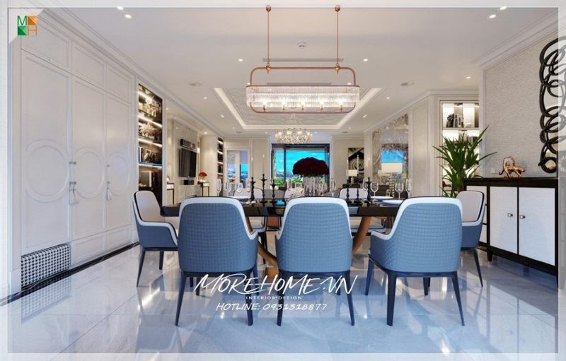 Phòng ăn nội thất trang trí với phong cách hiện đại sử dụng tiện nghi không gian sang trọng đẳng cấp