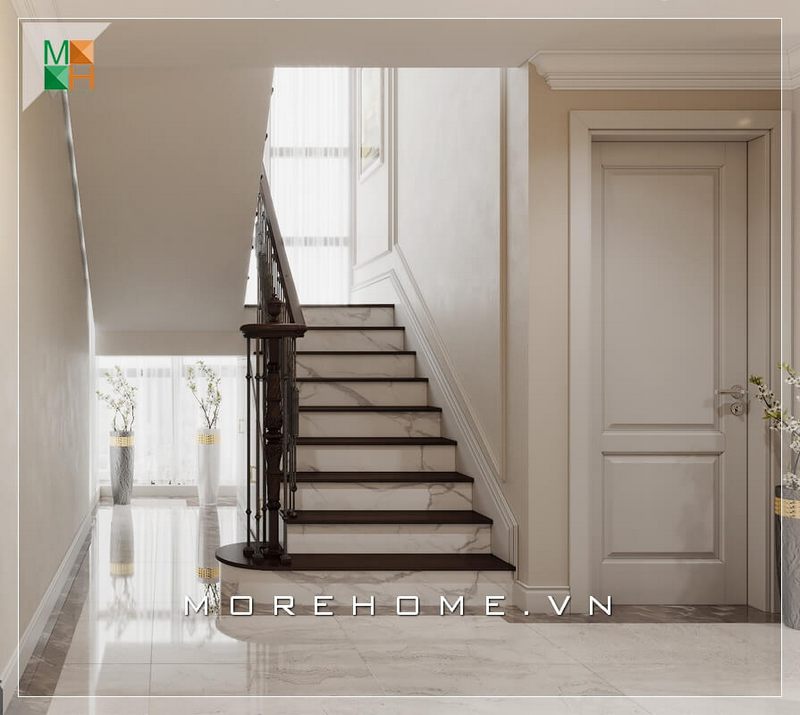 Mẫu cửa gỗ tự nhiên được phun sơn trắng cao cấp mang lại sự sang trọng và tinh tế cho nhà ở biệt thự.
