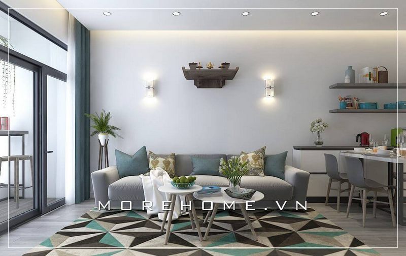 Sofa hiện đại có kiểu dáng văng nhỏ gọn, tiện lợi và gần gũi, được bọc bằng vải êm ái để tạo cảm giác ấm áp và thoải mái cho không gian phòng khách căn hộ chung cư.