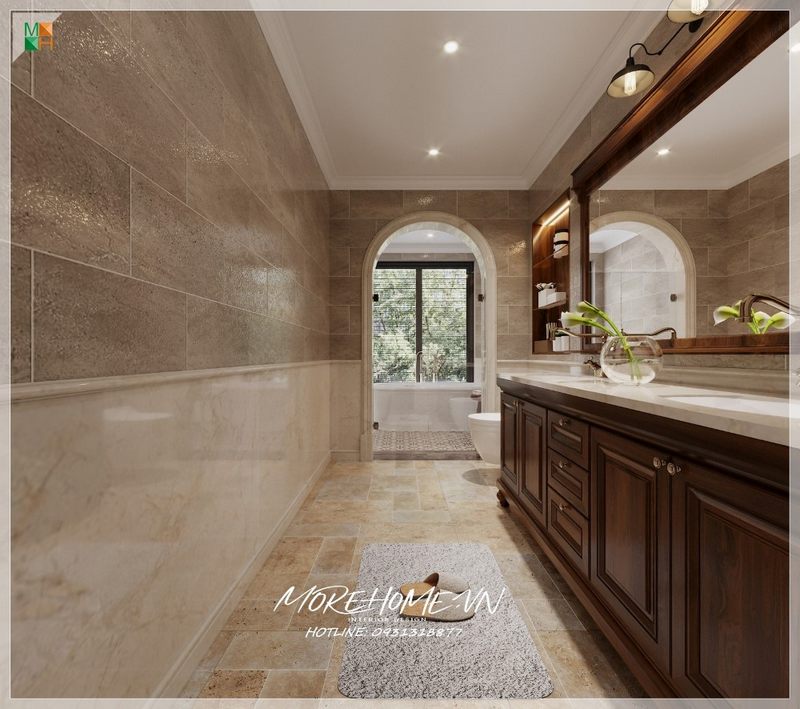 . Thiết kế phòng tắm hiện đại để phù hợp với các căn hộ, nhà phố, biệt thự được thực hiện bằng cách phân chia khu vực khô và ướt bằng vách kính cường lực cao cấp, giúp phòng tắm luôn làm sạch, khô ráo.